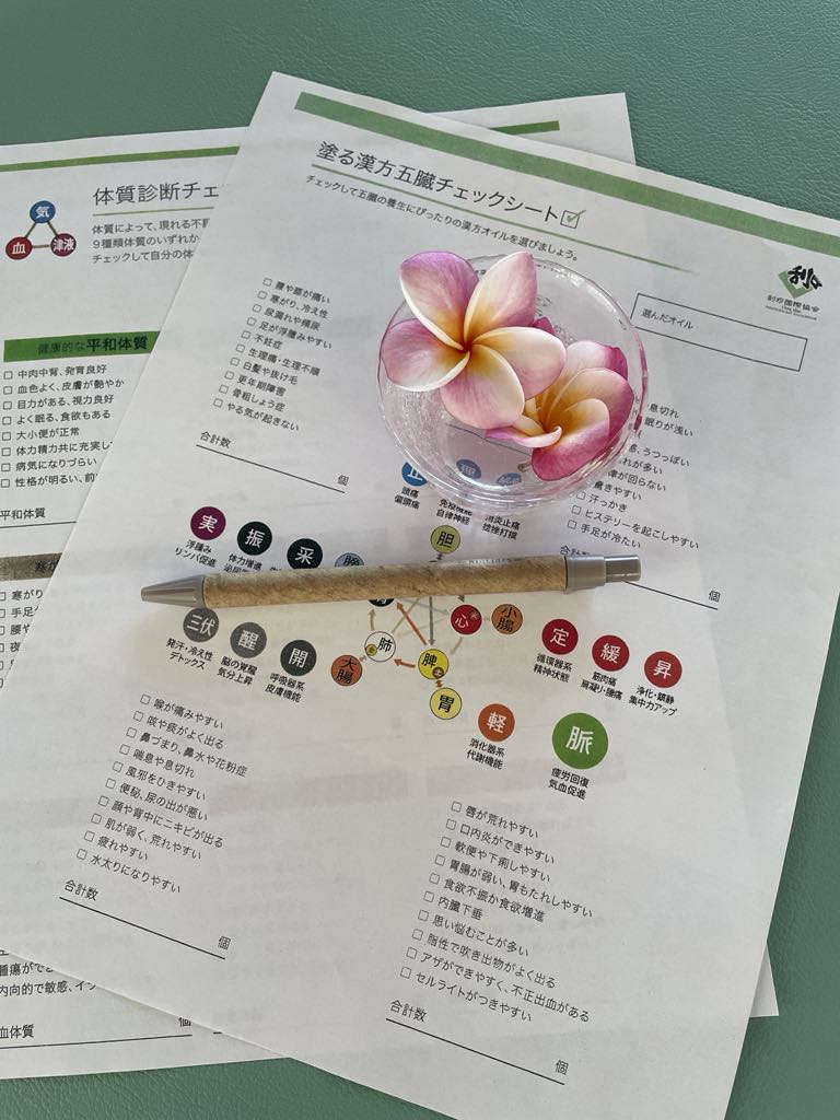 体質診断に基づくオイル選びで、今のあなたに必要なケアを個別に。